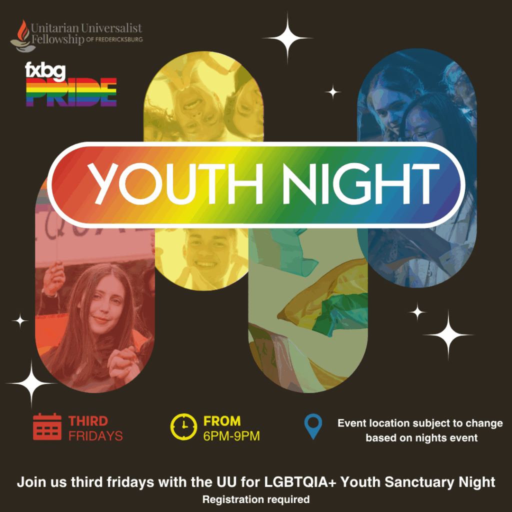 Alt Photo Text: A colorful flyer with the next upcoming book club events listed. Text Reads: Rainbow Reads, an LGBTQ+ and allies book group, 3rd Wednesdays, 6:30-7:30. New Members Welcome. In partnership with (FXBG PRIDE LOGO). The bottom footer is the Central Rappahannock Regional Library Logo. The background behind the flyer is of bookshelves with books on them.